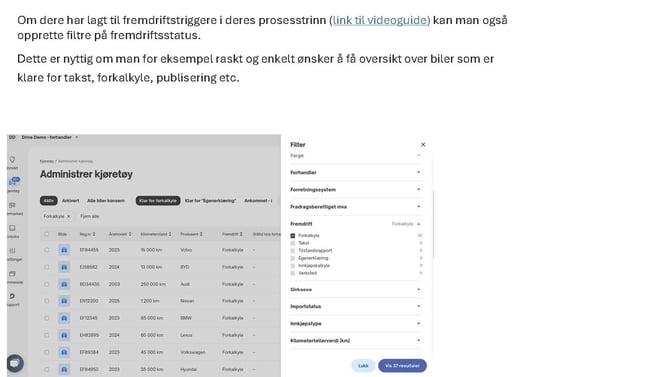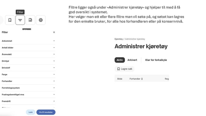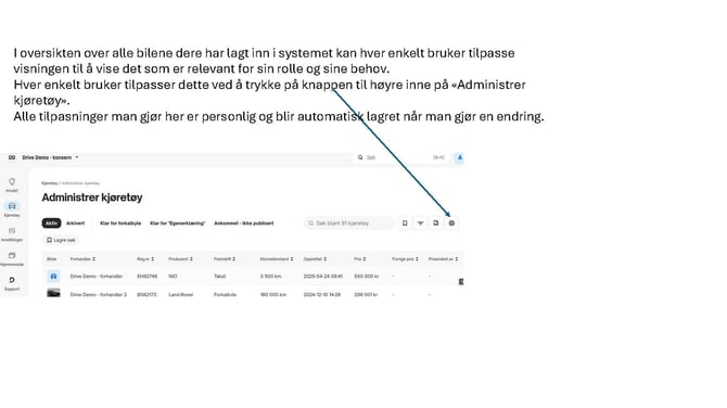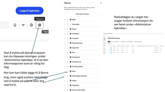 Hvordan tilpasse visning under "Administrer kjøretøy"